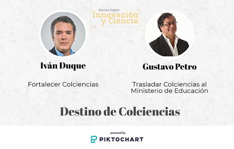 El Departamento Administrativo de Ciencia, Tecnología e Innovación sería parte del Ministerio de Educación, según el plan de gobierno de Petro, quien propone además crear dos consejos nacionales: el de Política Científica y el de Saber, Ciencia y Cultura. Según el plan de gobierno de Duque Colciencias debería mantenerse y ser fortalecido.